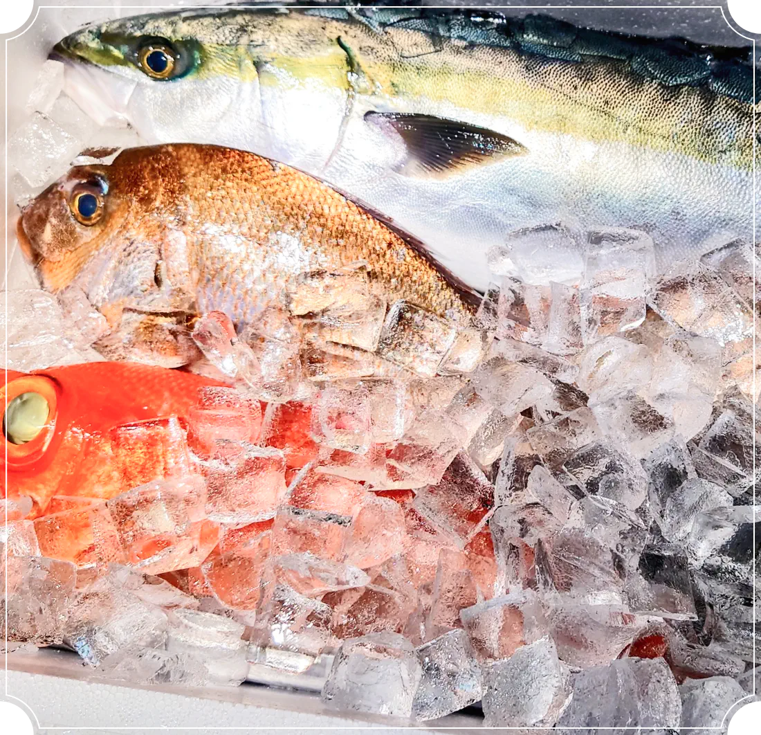 - ■ 豊富な魚種ラインナップ季節ごとに全国の港から届く多彩な鮮魚を販売。